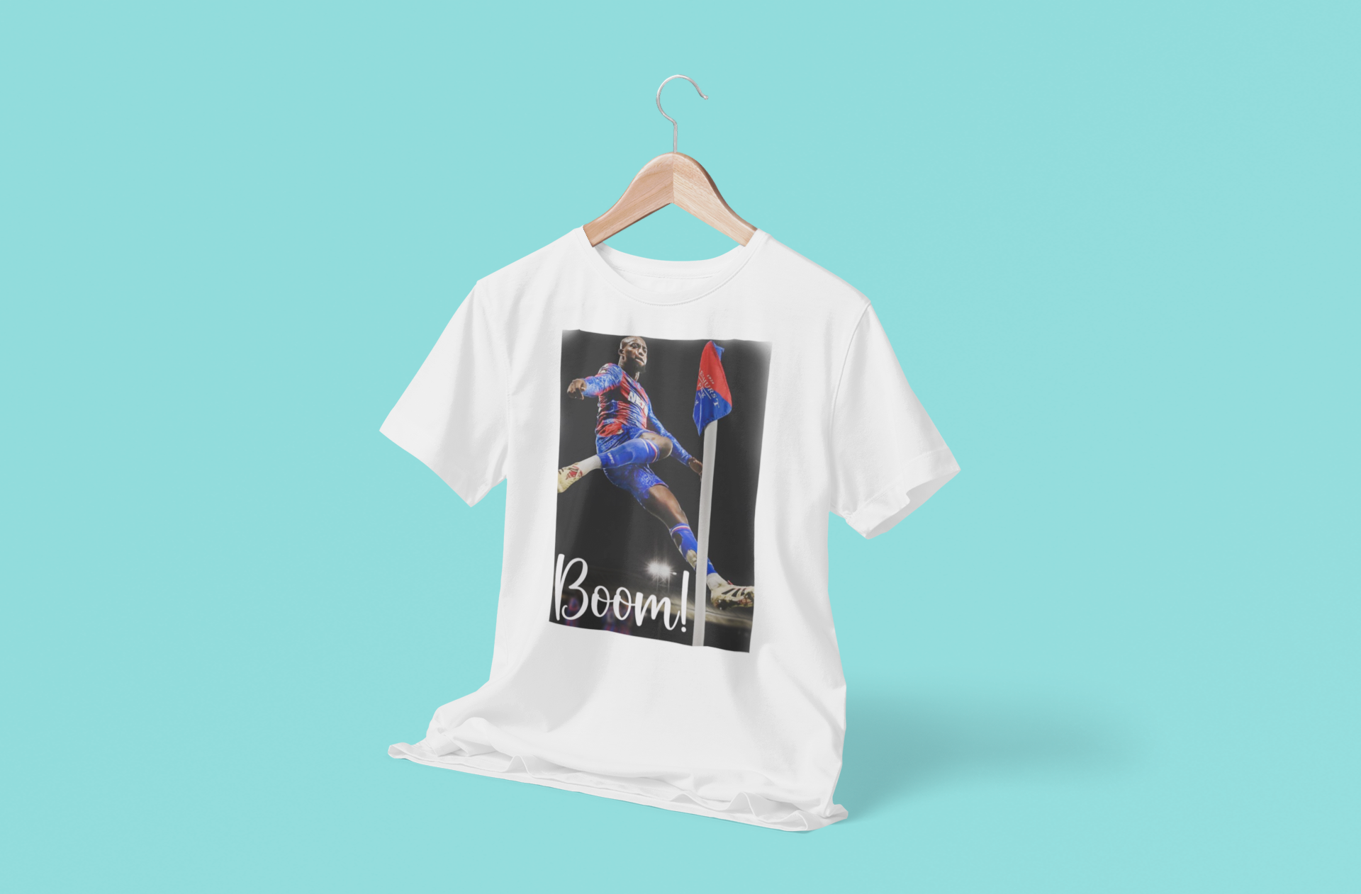 This CPFC Inspired Mateta Tshirt features the talented JP Mateta, known as a goal-scoring machine on Crystal Palace's team sheet. Show your support for the striker with this stylish tshirt. Quality, comfort, and fandom all in one.
