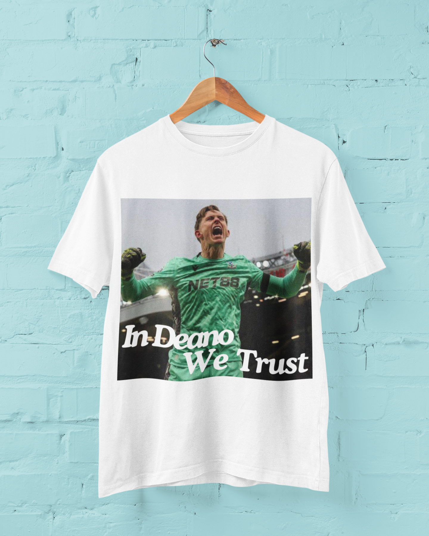 This CPFC Inspired Deano Tshirt celebrates the legendary goalkeeper Dean Henderson. Show your love for the team and honor Henderson's impressive skills with this comfortable and stylish tshirt. Perfect for game day or casual wear, it's a must-have for any true CPFC fan.